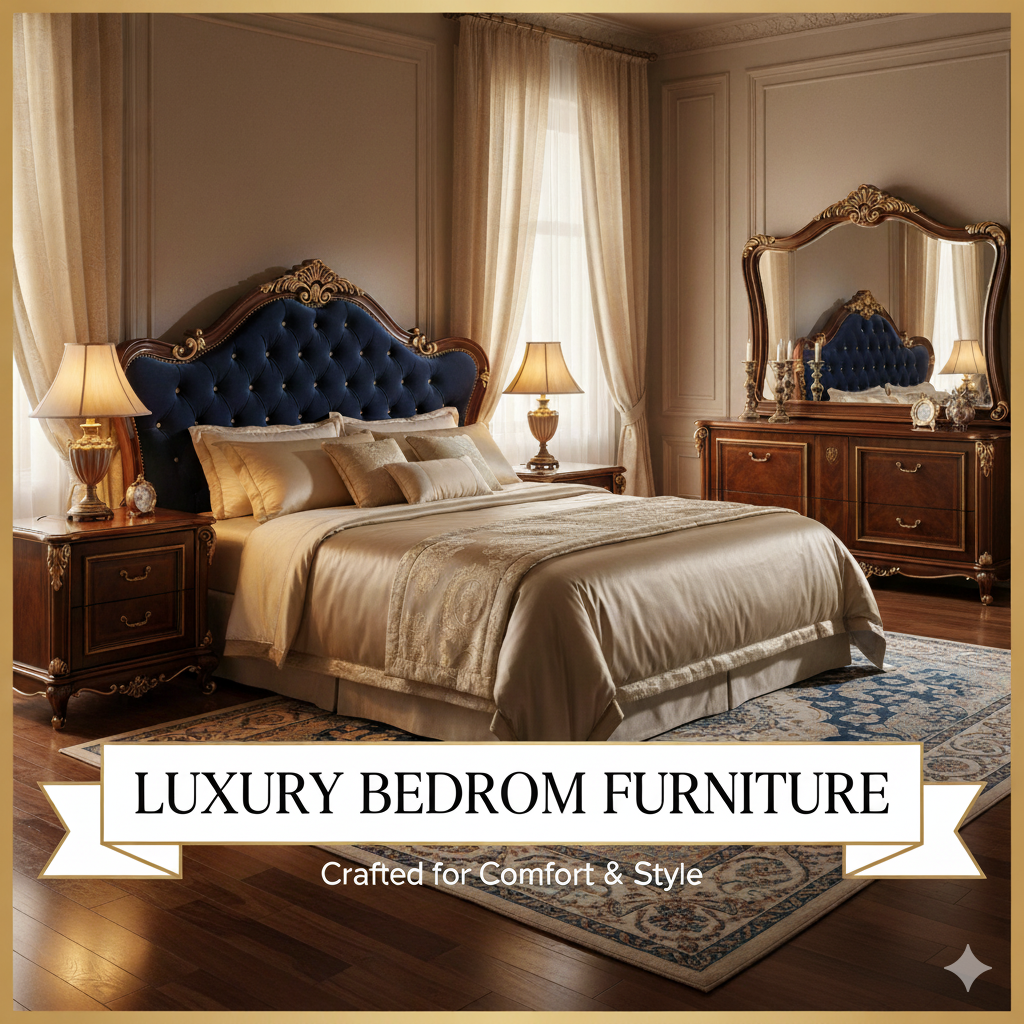 Luxurious 4-Piece Bedroom Set: Bed, 2 Side Tables, Dresser & Mirror - Fully Customizable