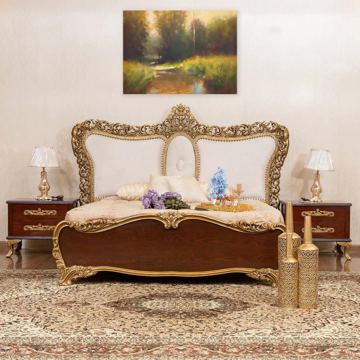 LUXURIOUS 4-PIECE BEDROOM SET: BED, 2 SIDE TABLES, DRESSER & MIRROR-FULLY CUSTOMIZABLE
